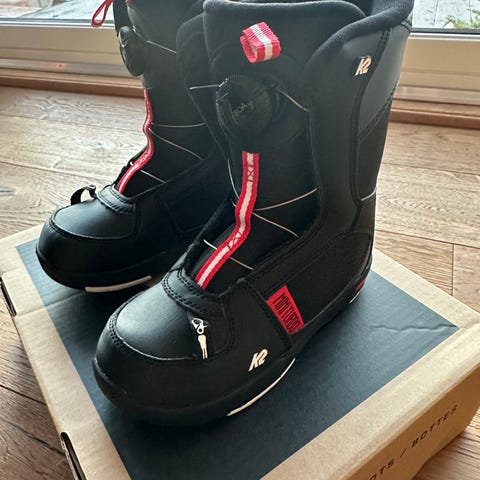 Selger et par K2 Mini Turbo snowboard-sko i meget god stand. Skoene er lite brukt, fremstår pene og velholdte, og har masse bruk igjen.