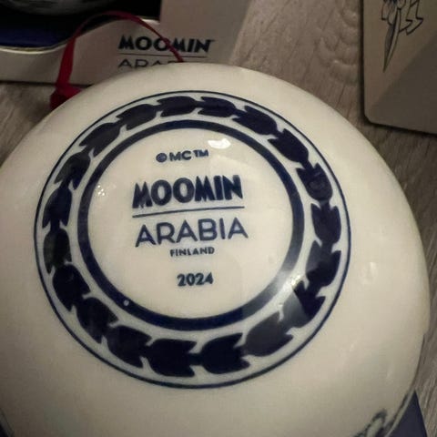 Ny i eske juletrepynt fra Kongelig dansk. Blå musselmalet riflet. Julepynt.