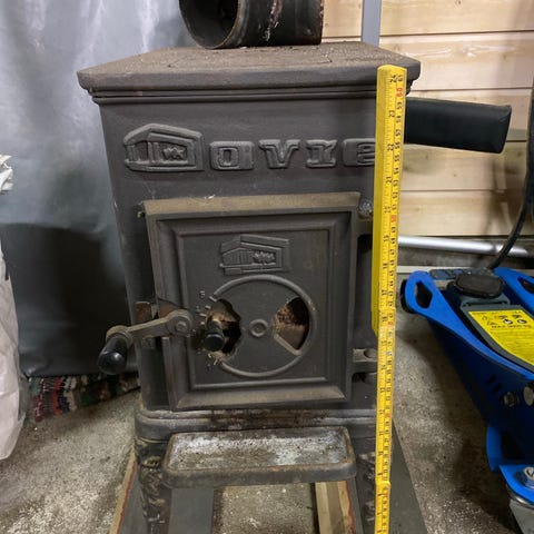 Jøtul støpejern vedovn. Fungerer som den skal og har vært i bruk inntil nylig.