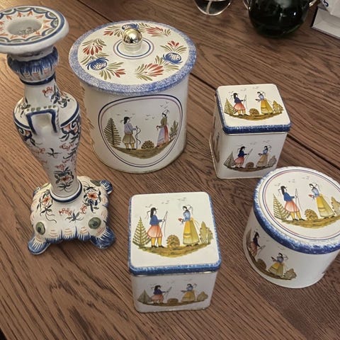 Selger fire nydelige gamle franske porselen middagstallerkener