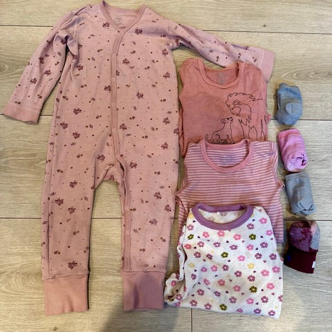 Liten klespakke i ull i størrelse 92 for jente. Plaggene er røde og laget i et mykt materiale. Inkluderer overdel og bukse med detaljer som volanger på ermene og bukseben. Passer til daglig bruk for barn i denne størrelsen.