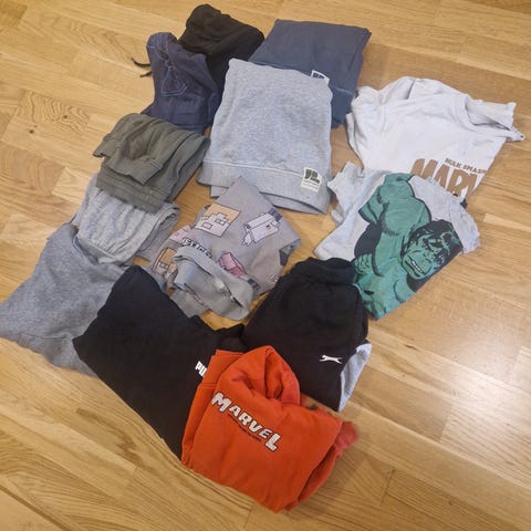 Pent brukt penklær til gutt. 2 skjorter i Størrelse 128, 2 skjorter i str 122 og 2 skorter i str 134. Mørke blå pen bukse i størrelse 128.. Det er fra H&M. Hentes på Hamar