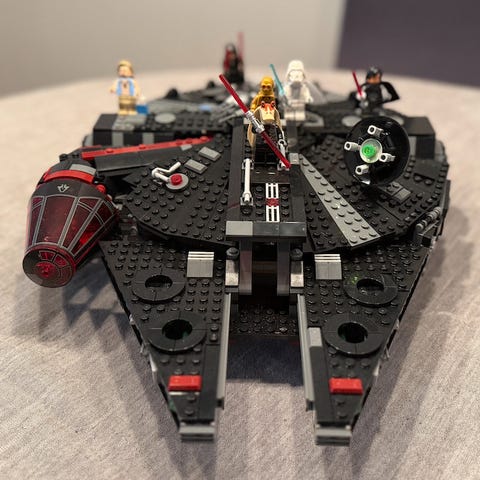 LEGO Star Wars The Dark Falcon byggesett med detaljerte minifigurer og funksjonelle elementer. Passer for aldersgruppen 10 år og oppover. Inneholder flere minifigurer og deler for å bygge det ikoniske romskipet Slave I fra Star Wars-universet.