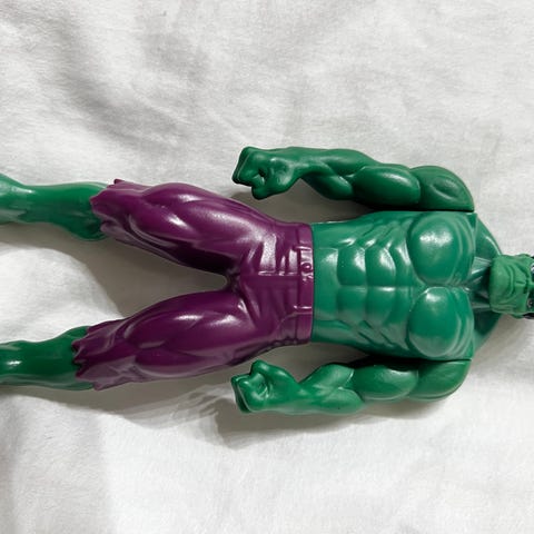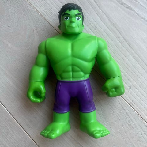 Marvel Hulk barn leketøy i grønn og lilla farge. Laget av plastmateriale, egnet for lek og samling. Ca 22cm høy.