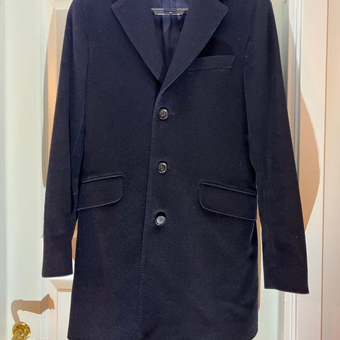 Selger en klassisk og elegant kåpe fra Oscar Jacobson, modell Savile Row Coat. Dette er en tidløs frakk i høy kvalitet, perfekt til både dress og mer formelle hverdags