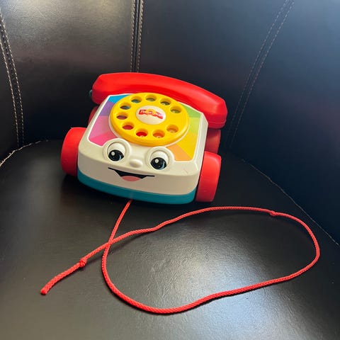 Fisher price telefon leke med lyd og musikk. Den er på engelsk. Gøy for barnet å leke og trykke på. Kjøper må sette inn batteri.