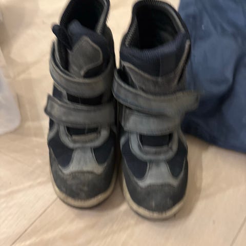 ECCO vintersko for unisex, størrelse 34. Skoene har borrelås for enkel justering og en robust såle med godt grep. Materialet er en kombinasjon av tekstil og syntetiske deler, egnet for barn.