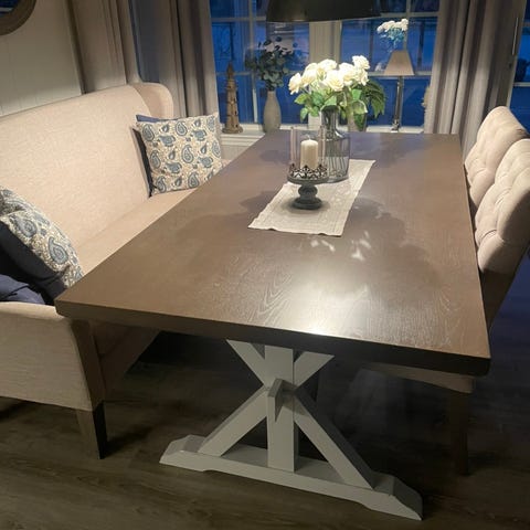 Må hentes på Tveit. Bena kan skrues av for transport.
