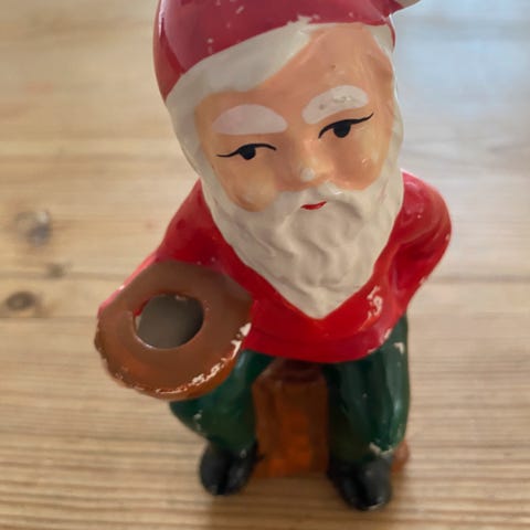 Julenisse lysestake i sølvplett selges. Høyde; 20 cm. Må hentes, sender ikke.