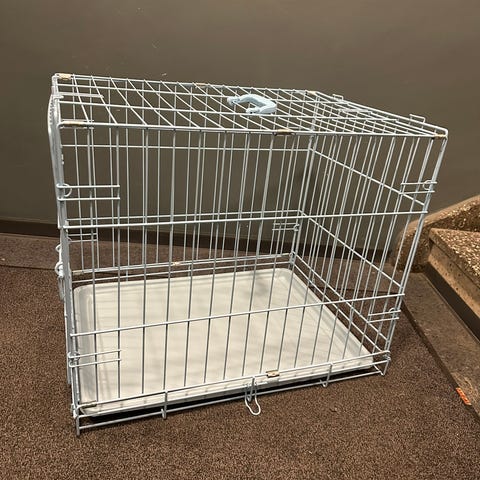 106cm bredt, 75cm høyt og 67cm dypt. Buret har to dører med låsemekanisme og kan foldes sammen for enkel oppbevaring og transport. Egnet for bruk til hunder, gir god ventilasjon og sikkerhet.