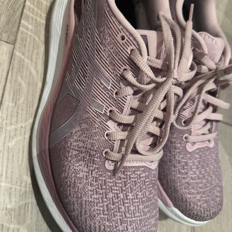 Asics Sneakers joggesko i størrelse 38. Skoene har en olivengrønn farge og hvit såle. Paser fo hverdagslig bruk .