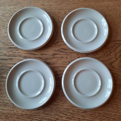 Asjettene er 17 cm i diameter. De er hele og pene uten skader.
