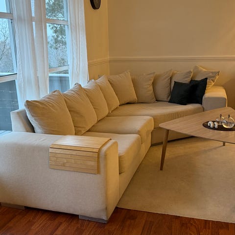 Se info her: ps: vår sofa har åpen ende høyre side (se bilde i annonsen)