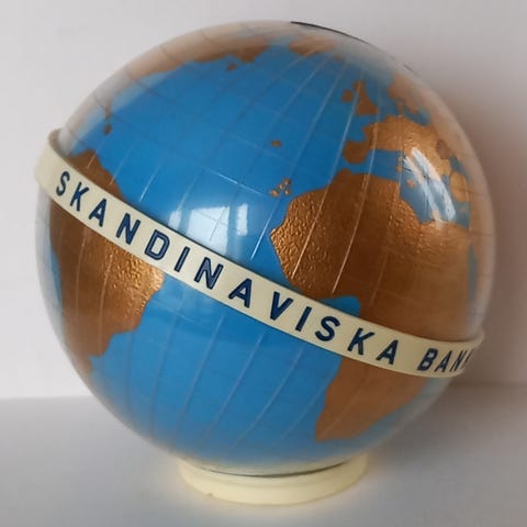 Sparebøsse for A/S kjøbmandsbanken. Merket nr 100. Se bilder. Har ikke nøkkel. Veier ca 380 g. Kan hentes i Heggedal eller sendes som liten Norges pakke til kr 73.