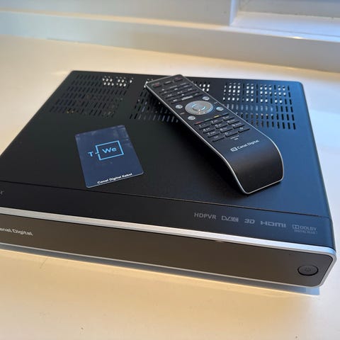 Ubrukt T-We boks II med fjernkontroll. Har AC/DC strømadapter, ellers ingen ledninger inkludert. Kan hentes i Bergen sentrum.