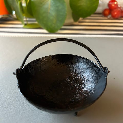 Grøtskje fra Askvoll i tinn med dekorative detaljer på skaftet og skjeens bakside.
