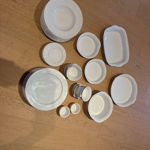 12 stk middagstallerkener selges samlet for kr 1700. Som nye. Må hentes, sendes ikke