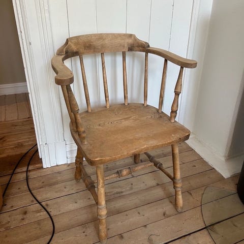 Solide vintage pinnestoler i heltre. Sortmalte, stabile og komfortable. Normal bruksslitasje som gir fin patina. 4 stk. Selges samlet.