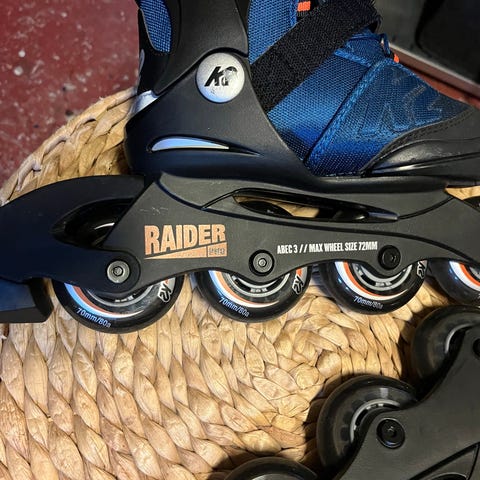 K2 rulleskøyter for barn i størrelse 33.5-35,5. Skøytene er svarte og designet for rulleskøyting. De har justerbare stropper for god passform.