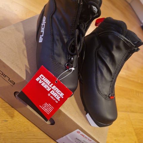 Alpina T5 Plus Touring Jr skisko str 31. Sort, med glidelås i front. Pent brukt. Ingen synlige skader.