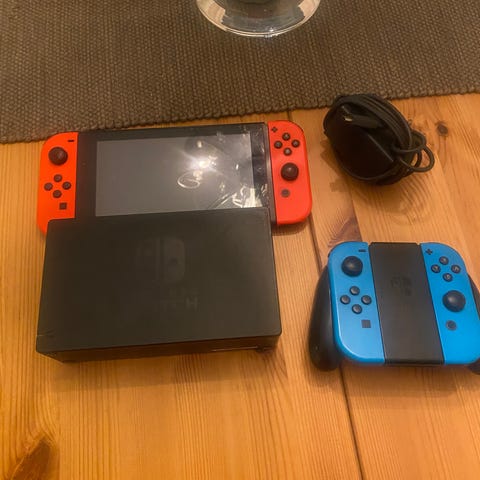 Selger en nesten ny Nintendo Switch med 8 spill og 1 original kontroll + to ekstra.