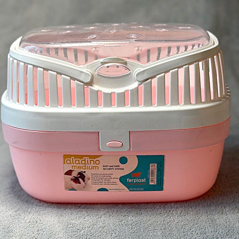 Fin stor marsvin-kasse +flere hus/matskåler etc + reisebur gis bort