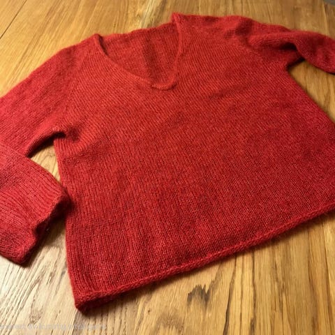 Hvit strikkegenser i merinoull og silk mohair. Mønster er Knitting for Olive Bregne Sweater. Brukt noen få ganger men den ble for liten. Pent brukt.