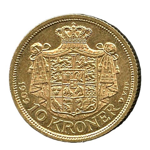 Flott Dansk 10 kroning, 1909, Frederik VIII, Danmarks Konge.