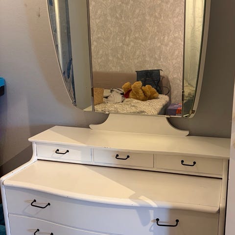 Sminkebord med speil, og lys . Selges samlet eller separat.