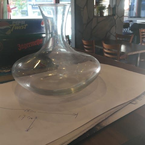 En lekker vinkaraffel er aldri feil å imponere med! Høyde 21 cm, dette uten tilhørende kork i samme utførelse og mønster. Rommer en standard flaske på 750 ml. Er svært stødig og har en egenvekt på 2 kc