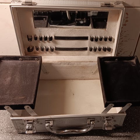 Koffert i grei stand gis bort. Typisk mellomstørrelse.