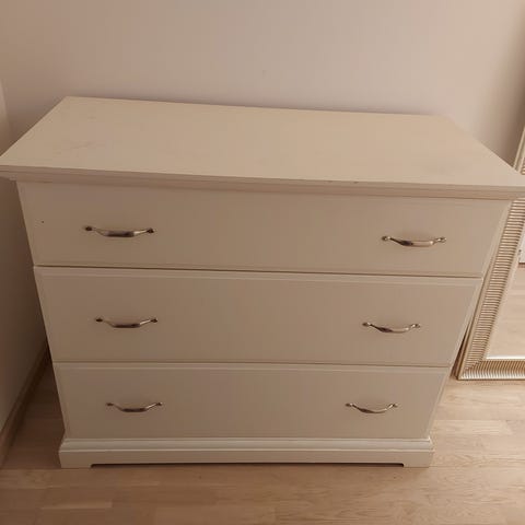 Godt brukt, må sikkert slipes og lakkes, men ellers i god stand. 4 skuffer.