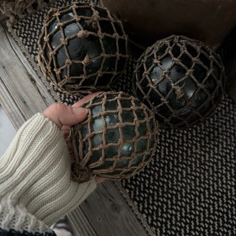 Rødbrune garnkuler for samlere. Måler ca 13cm i Diameter. Tungvektere sammenlignet med tilsvarende. Tykt glass. Den ene er veldig klar i fargen. Den andre har trolig røyk på innsiden fra blåsing.