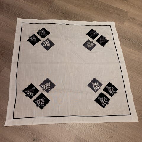 Fin juleduk i en god julefin farge med mønster av stjerner og juleklokker vevd inn. Vanskelig å få riktig farge på bildet).