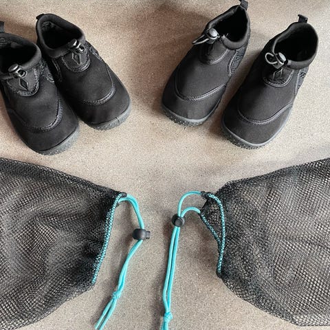 Pent brukte badesko, størrelse 32, godt grep på sålen. Perfekte til svaberg og grov havbunn