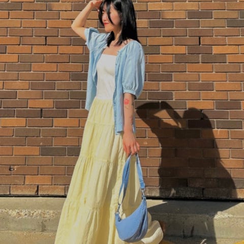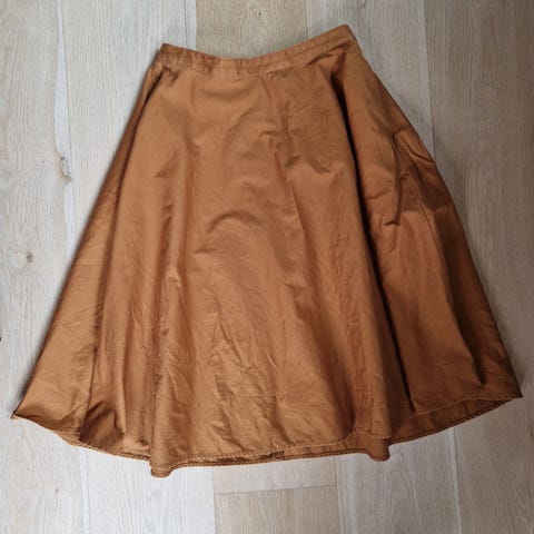 Uniqlo skjørt i størrelse L, laget av polyester. Skjørtet har et rutemønster i svart og hvitt, 2 lommer, og glidelås på siden. Elastisk midje.