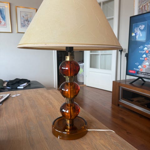 Vintage bordlampe i glass med mønster