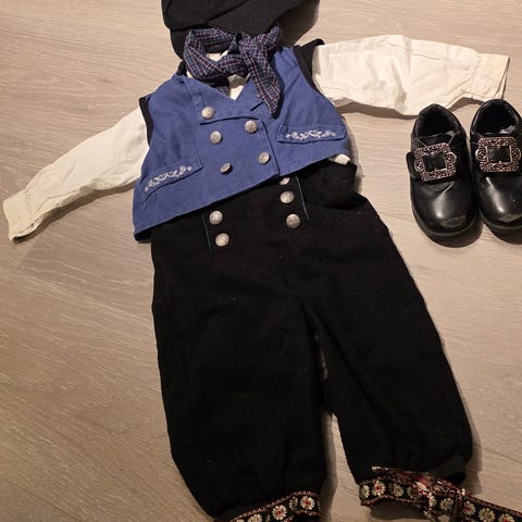 Størrelse 80 på bunad og størrelse 22 på sko.