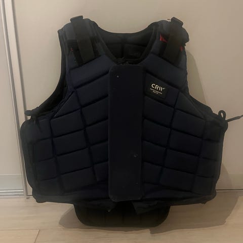 Sikkerhetsvest for ridning selges. Barnestørrelse XL (12 år(. Se bilder. Gode justeringsmuligheter med sterke borrelåser.