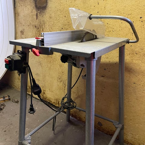 Gjerde 250 bordsag med metallramme og sagblad fra HM-Verktøy. Eldre modell som fungerer. Er ikke 100% på presisjon, fungerer helt greit på grovkapp. Kan klappes i sammen for enkel transport