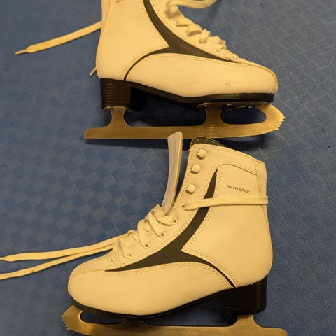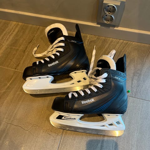 Trex Colorado ishockeyskøyter for barn i størrelse 33. Skøytene er svarte med hvite knivblad og er egnet for ishockey.