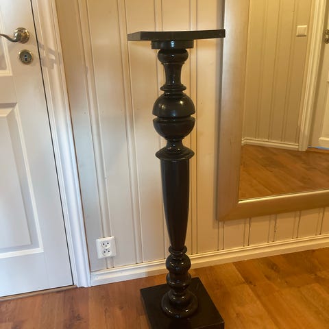 Gammel pidestall av metall med fin ornamentering. Hel og i orden, men med noe patina. Kjenner ikke merket, men kommer trolig fra Øst-Europa (Tsjekkia, Ungarn). Tung og stødig.