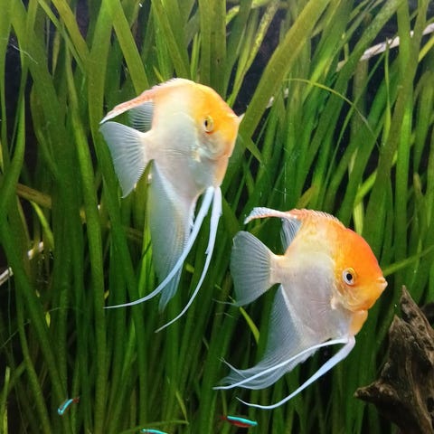 Selger et par av skalare. Disse legger egg nesten hver 2 uke. Frisk og gode fisker. Selges samlet. Du trenger en stor akvarie til disse. Helst 200 liter.