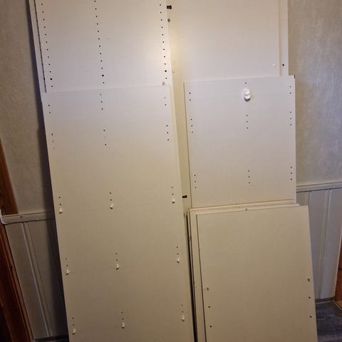 Hvitt bordplate i ukjent materiale med synlige skader og slitasje. Passer til bruk som erstatningsplate eller til tilpassing etter behov.