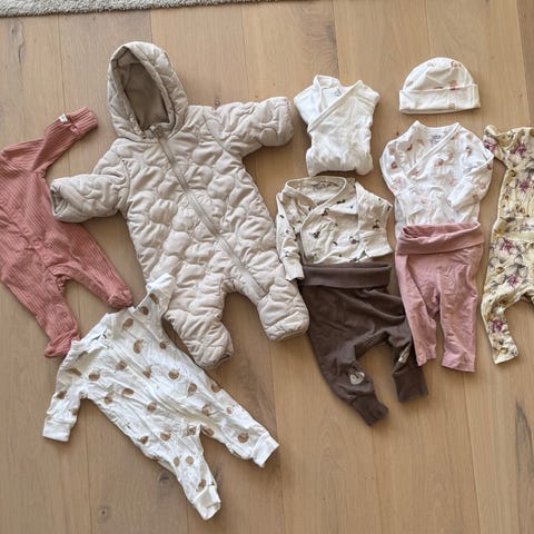 Babyklær i bomull til nyfødt i str 44 og 50