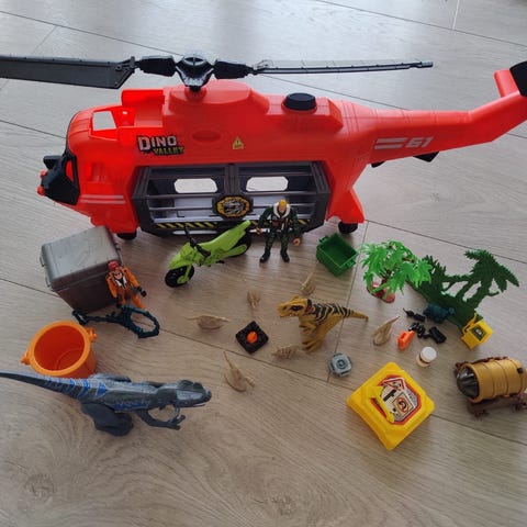 Dinosaurfigurer i forskjellige størrelser og farger. Settet inkluderer flere typer dinosaurer, blant annet flygedinosaurer og kjøttetende dinosaurer. Laget av plastmateriale, egnet for barn som er interessert i dinosaurer og for lek og samling.