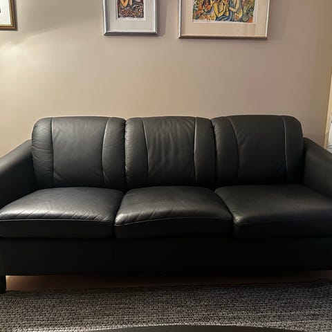Veldig pent brukt Ikea sovesofa i svart skinn selges. Ingen skader, fremstår som nesten ny. Har stått som ekstra soveplass på hytta men selges pga lite golvplass hos oss nur den blir slått ut.