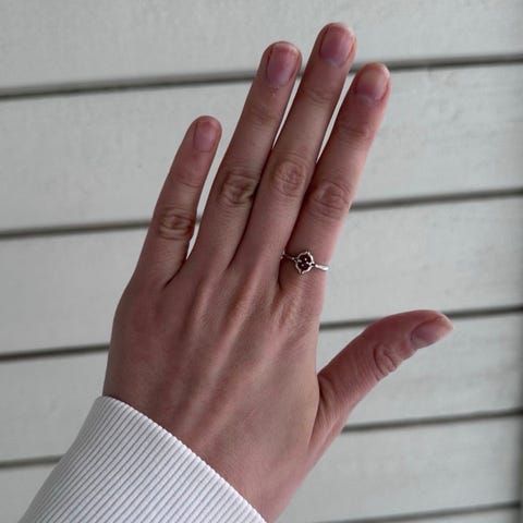 Vintage sølvring med grønn sten 💚 Ringstørrelse 52. 925-sølv, stemplet på innsiden. Delen som går over stenen er mer i sølv fordi fargen har falmet litt, men veldig lite synlig. Ellers pent brukt og i bra stand.
