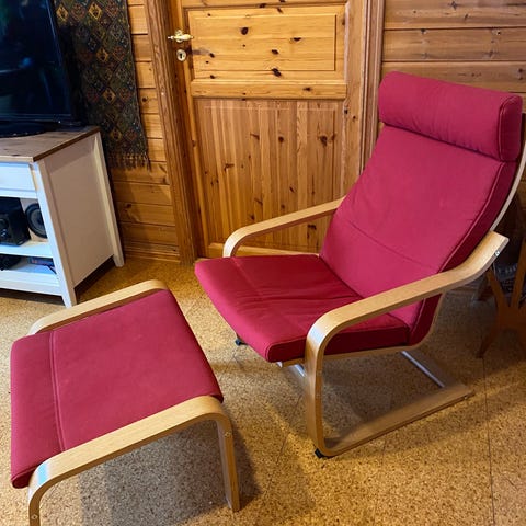 Pent brukt stol med krakk til salgs.