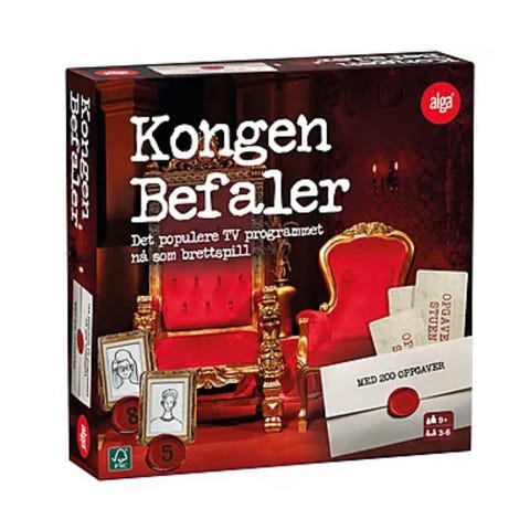 Kongen Befaler brettspill basert på det populære TV-programmet. Inneholder over 200 oppgaver fordelt på ulike kategorier som laboratorieoppgaver og oppgaver i stuen. Spillet leveres med regler, oppgavekort og tilbehør for gjennomføring av oppgavene.